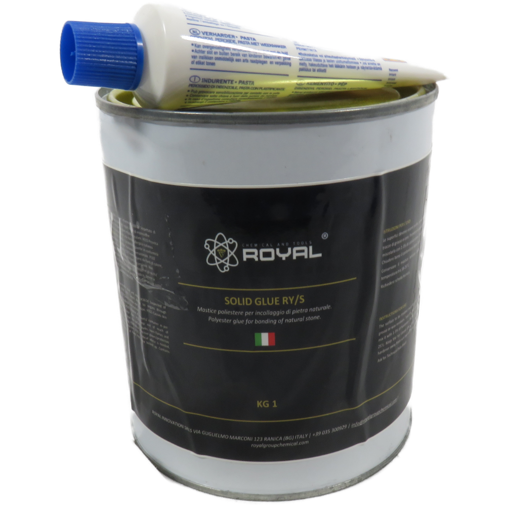 ROYAL Solid Polyester Glue is a high-performance, fast-curing adhesive specially formulated for bonding and repairing natural and engineered stones like marble, granite, and quartz. It provides strong adhesion, excellent polishability, and can be easily colour-matched with pigments. Its non-sag formula makes it ideal for both horizontal and vertical applications, including seams, edge bonding, and surface repairs. Suitable for indoor and outdoor use, it resists yellowing and weathering over time.